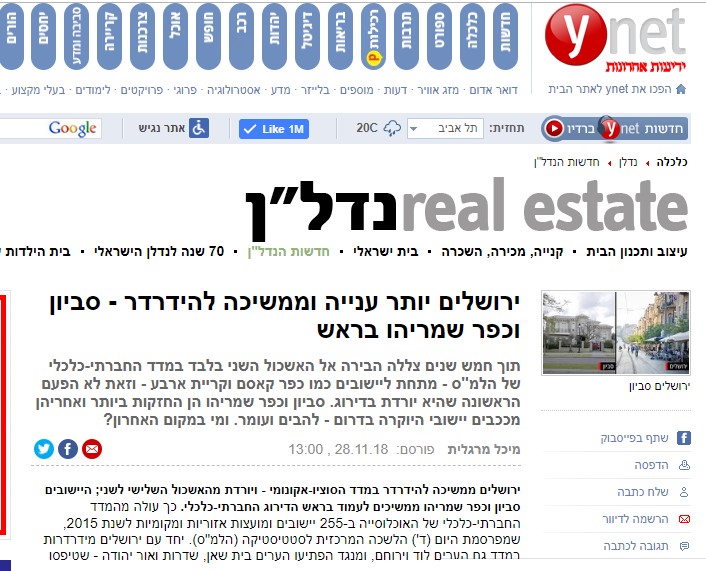 תוך חמש שנים צללה הבירה אל האשכול השני בלבד במדד החברתי-כלכלי של הלמ"ס - מתחת ליישובים כמו כפר קאסם וקריית ארבע..."