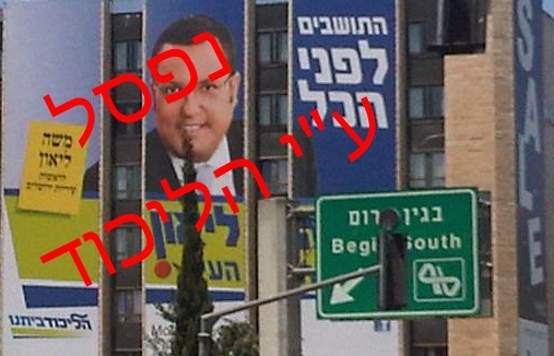 הנידון: שלט הבחירות בכניסה לעיר ירושלים של מר משה ליאון המתמודד לראשות העיר.