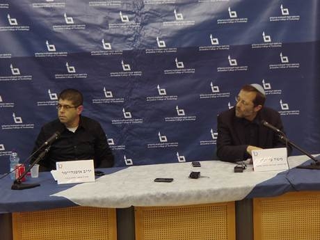 ביה"ס הגבוה לטכנולוגיה "מכון לב" בירושלים, ידוע בדרך כלל כמוסד אקדמאי דתי- טיפוסי שקט וחף מכותרות, אבל הערב הוא שימש במה לעימות סוער ומסקרן בין המעומד לראשות הליכוד משה פייגלין, לבין מזכ"ל תנועת שלום עכשיו יריב אופנהיימר.